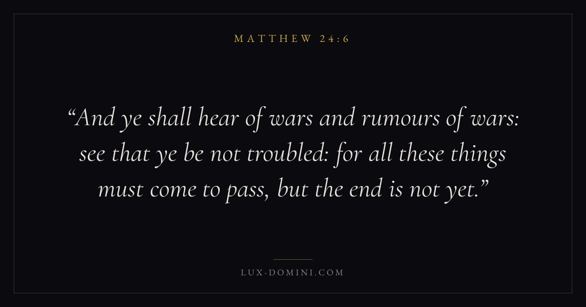 And ye shall hear of wars and rumours of wars: see that ye be not troubled: for all these things must come to pass, but the end is not yet.