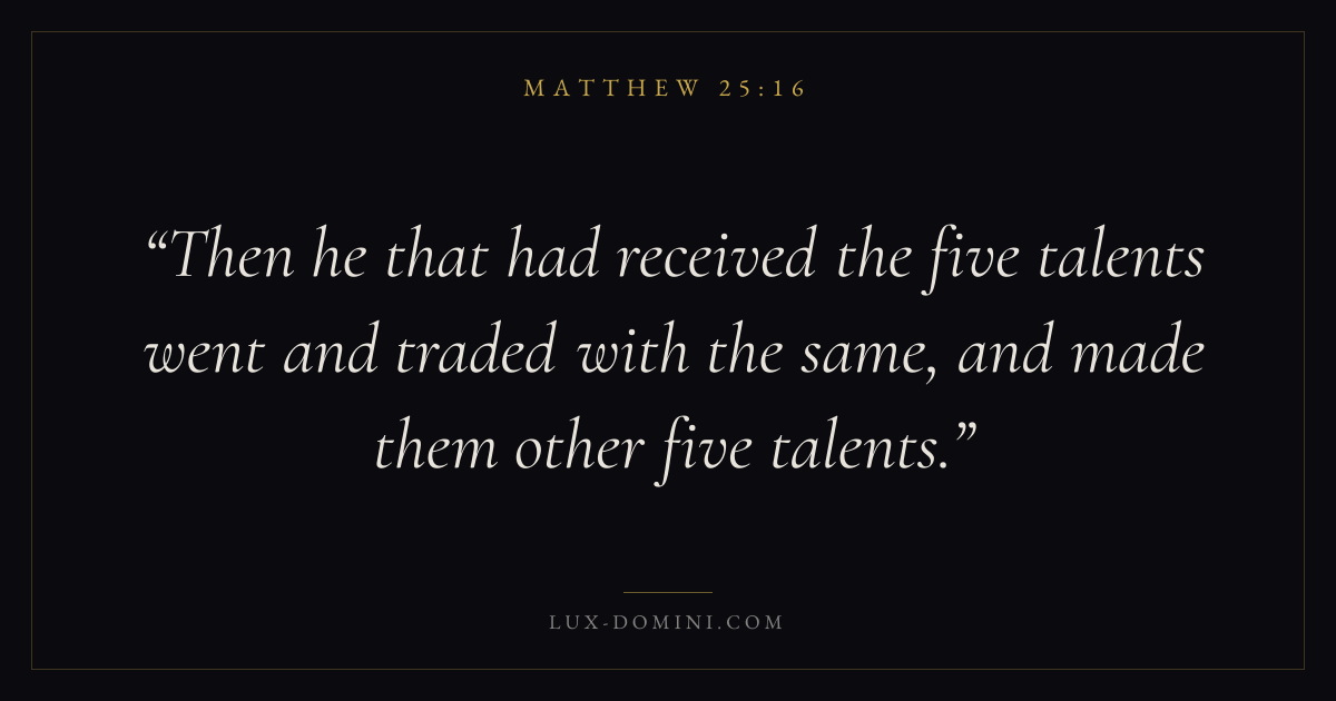 Then he that had received the five talents went and traded with the same, and made them other five talents.
