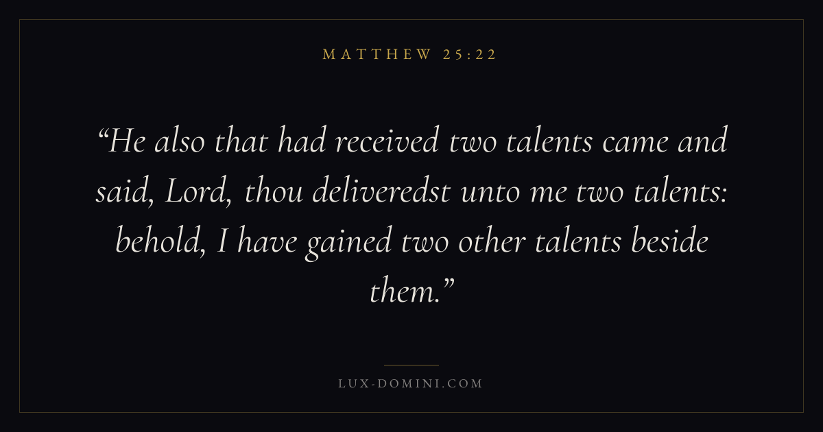 He also that had received two talents came and said, Lord, thou deliveredst unto me two talents: behold, I have gained two other talents beside them.