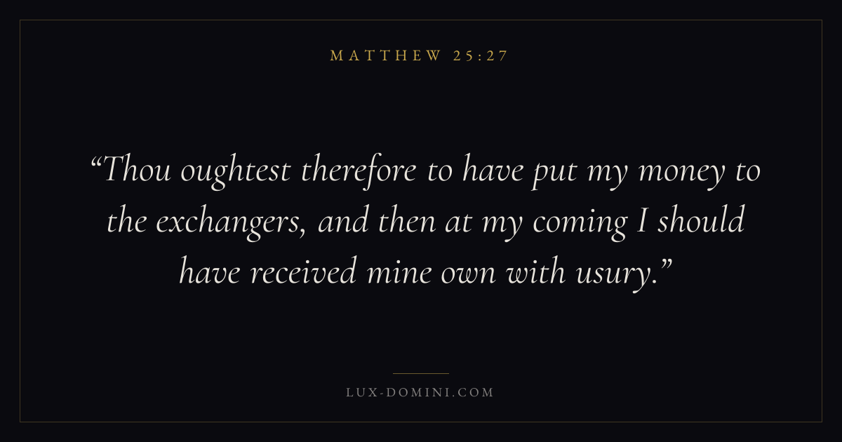 Thou oughtest therefore to have put my money to the exchangers, and then at my coming I should have received mine own with usury.