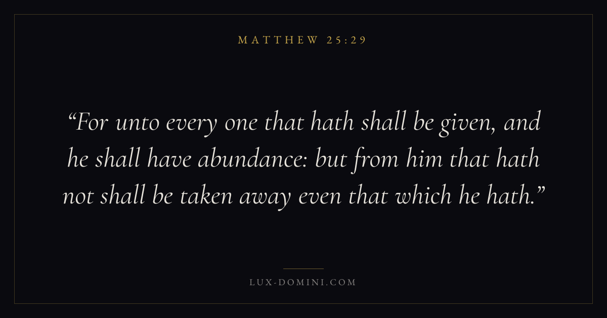 For unto every one that hath shall be given, and he shall have abundance: but from him that hath not shall be taken away even that which he hath.