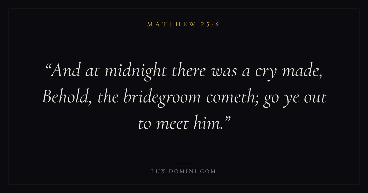 And at midnight there was a cry made, Behold, the bridegroom cometh; go ye out to meet him.