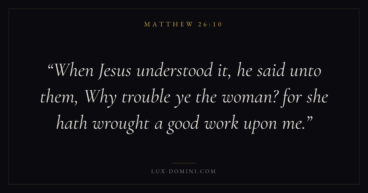 When Jesus understood it, he said unto them, Why trouble ye the woman? for she hath wrought a good work upon me.