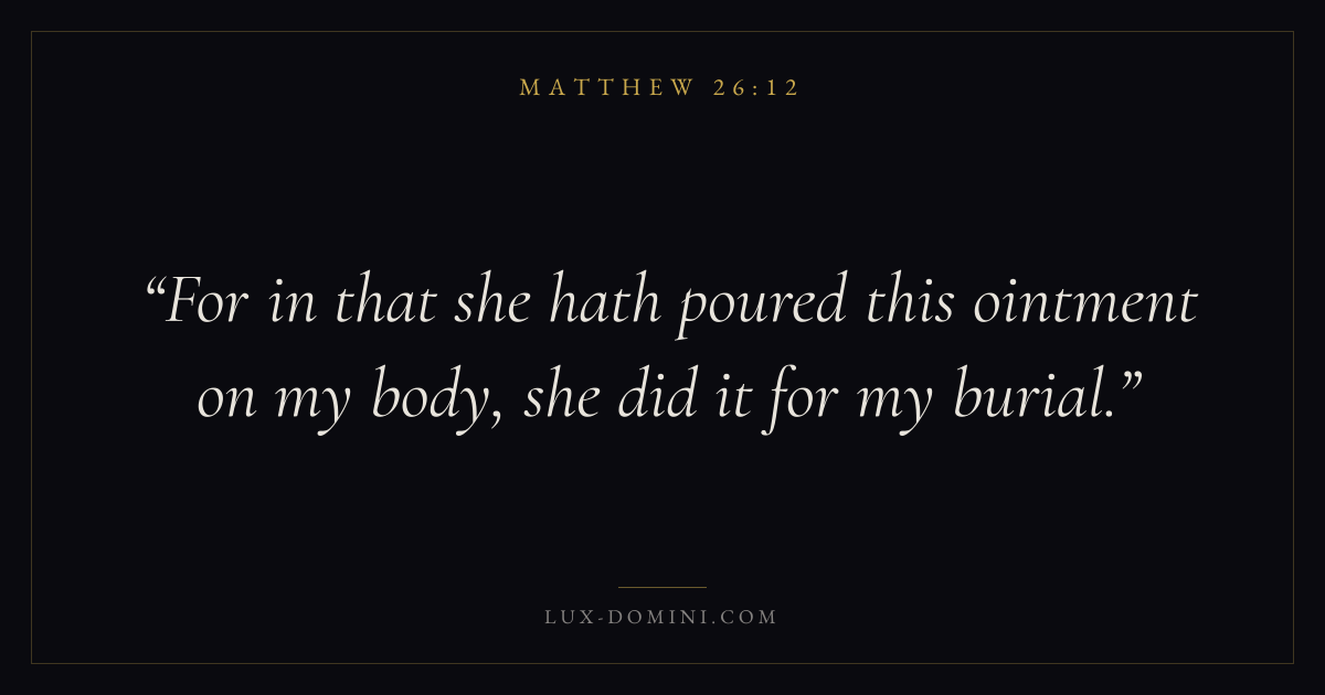 For in that she hath poured this ointment on my body, she did it for my burial.