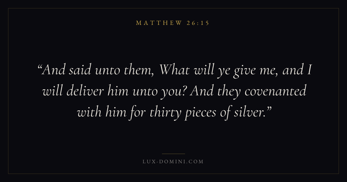 And said unto them, What will ye give me, and I will deliver him unto you? And they covenanted with him for thirty pieces of silver.