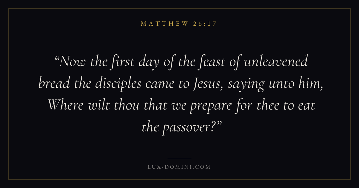 Now the first day of the feast of unleavened bread the disciples came to Jesus, saying unto him, Where wilt thou that we prepare for thee to eat the passover?
