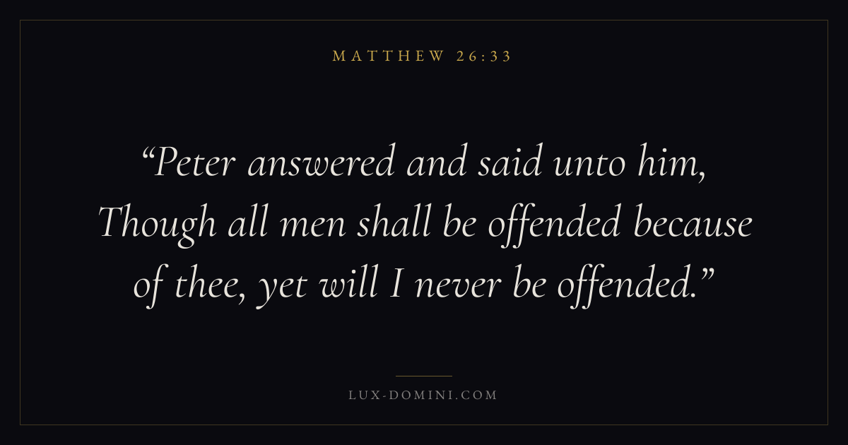 Peter answered and said unto him, Though all men shall be offended because of thee, yet will I never be offended.