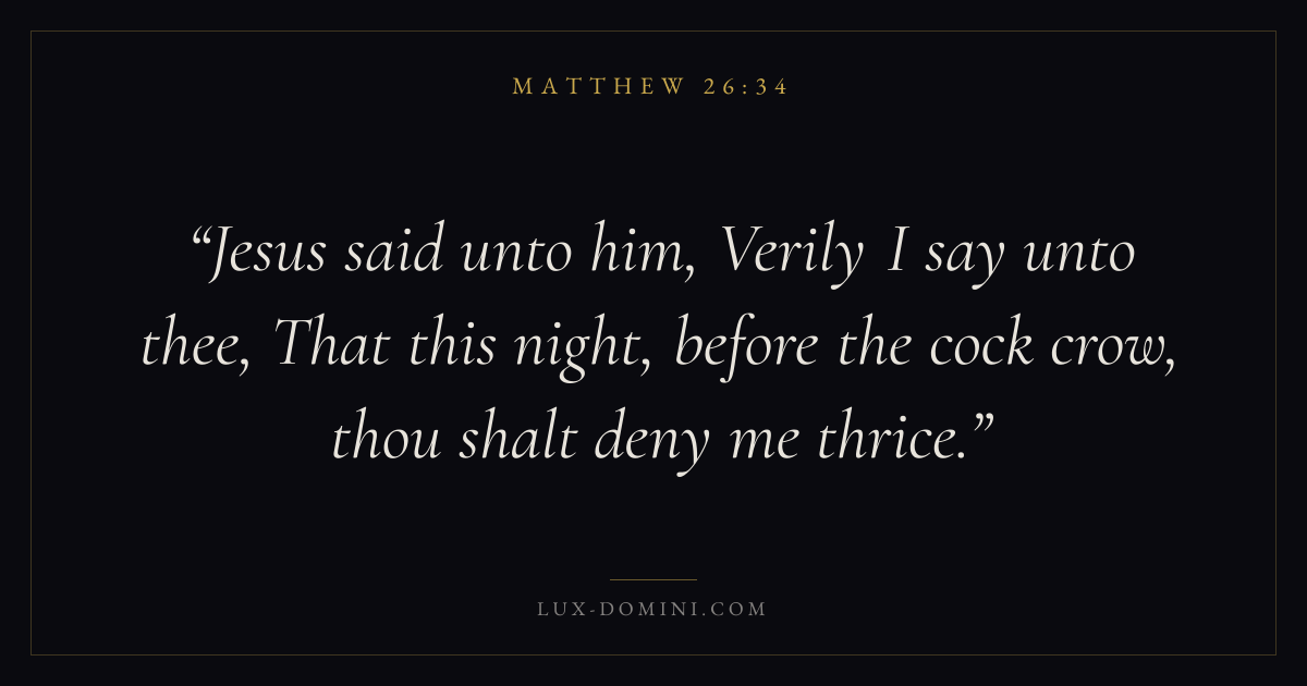 Jesus said unto him, Verily I say unto thee, That this night, before the cock crow, thou shalt deny me thrice.