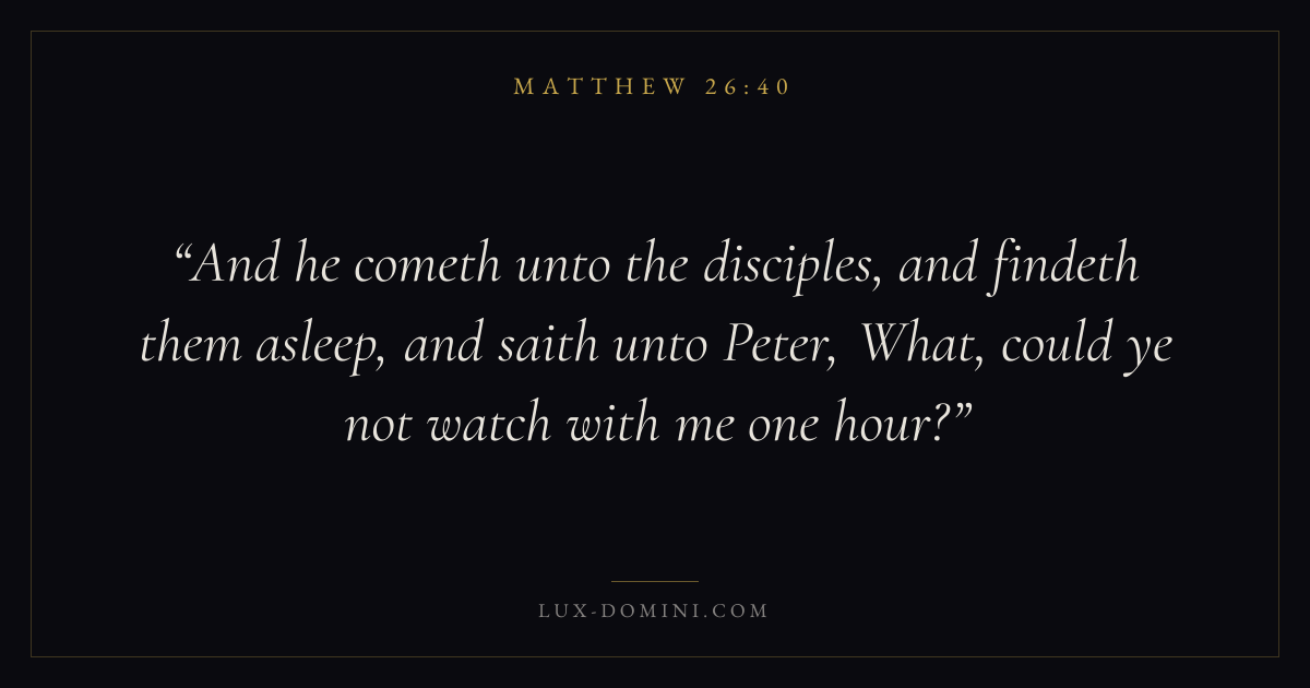 And he cometh unto the disciples, and findeth them asleep, and saith unto Peter, What, could ye not watch with me one hour?