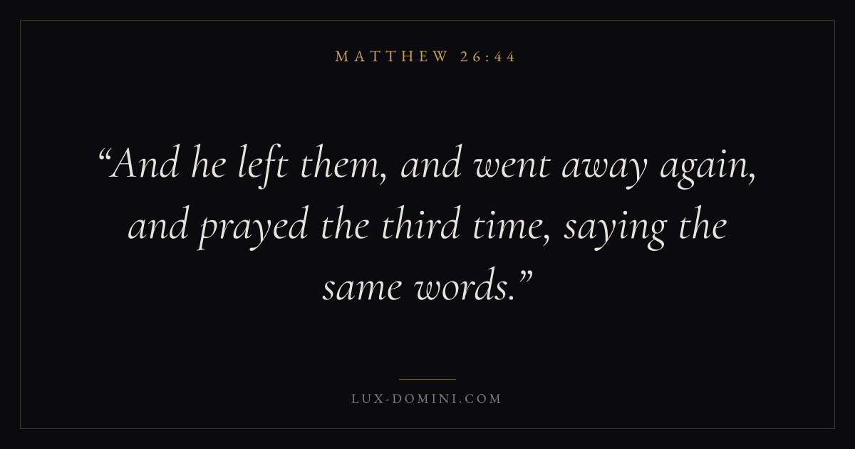 And he left them, and went away again, and prayed the third time, saying the same words.