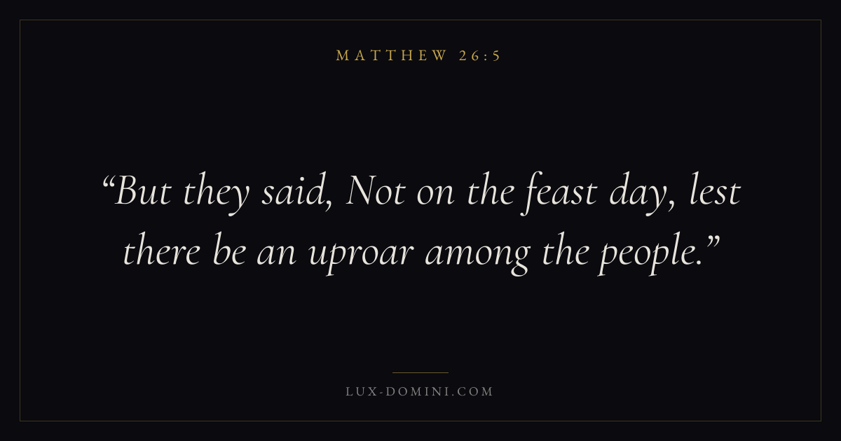 What does Matthew 26:5 mean?