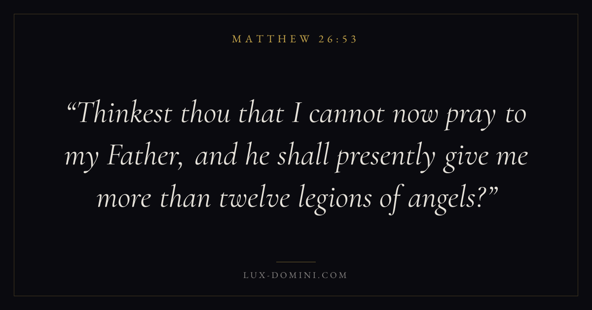 Thinkest thou that I cannot now pray to my Father, and he shall presently give me more than twelve legions of angels?