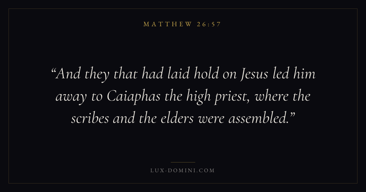 And they that had laid hold on Jesus led him away to Caiaphas the high priest, where the scribes and the elders were assembled.