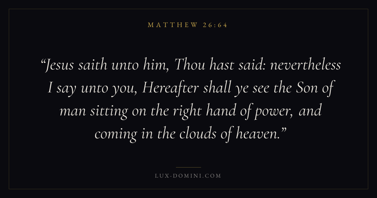 Jesus saith unto him, Thou hast said: nevertheless I say unto you, Hereafter shall ye see the Son of man sitting on the right hand of power, and coming in the clouds of heaven.