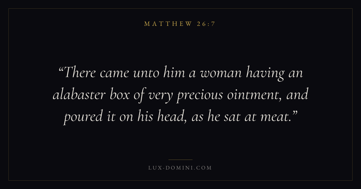 There came unto him a woman having an alabaster box of very precious ointment, and poured it on his head, as he sat at meat.