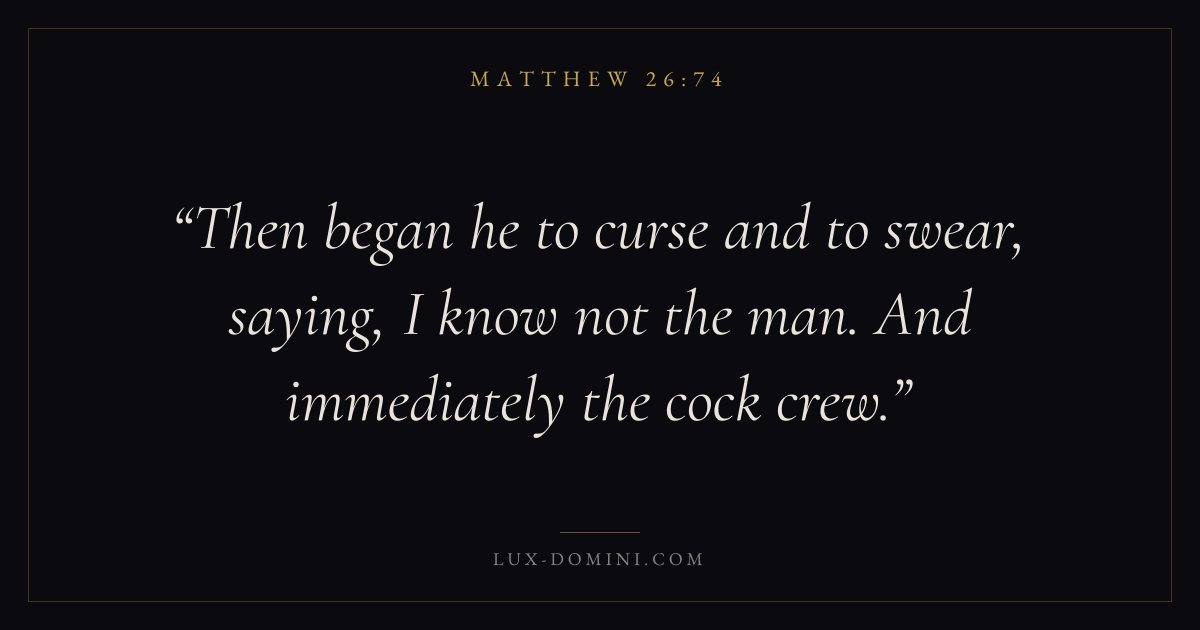 Then began he to curse and to swear, saying, I know not the man. And immediately the cock crew.