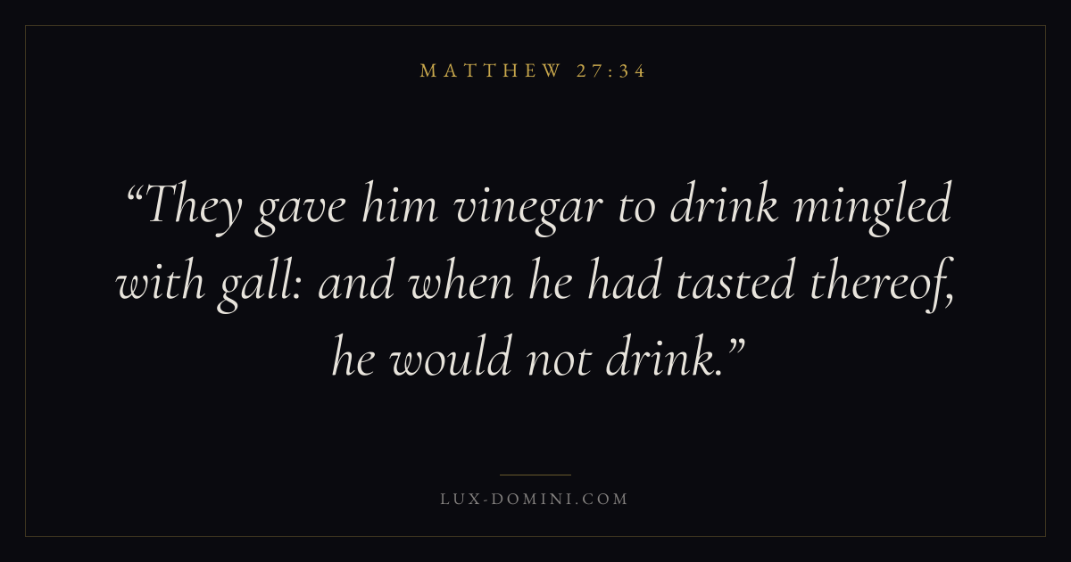 They gave him vinegar to drink mingled with gall: and when he had tasted thereof, he would not drink.