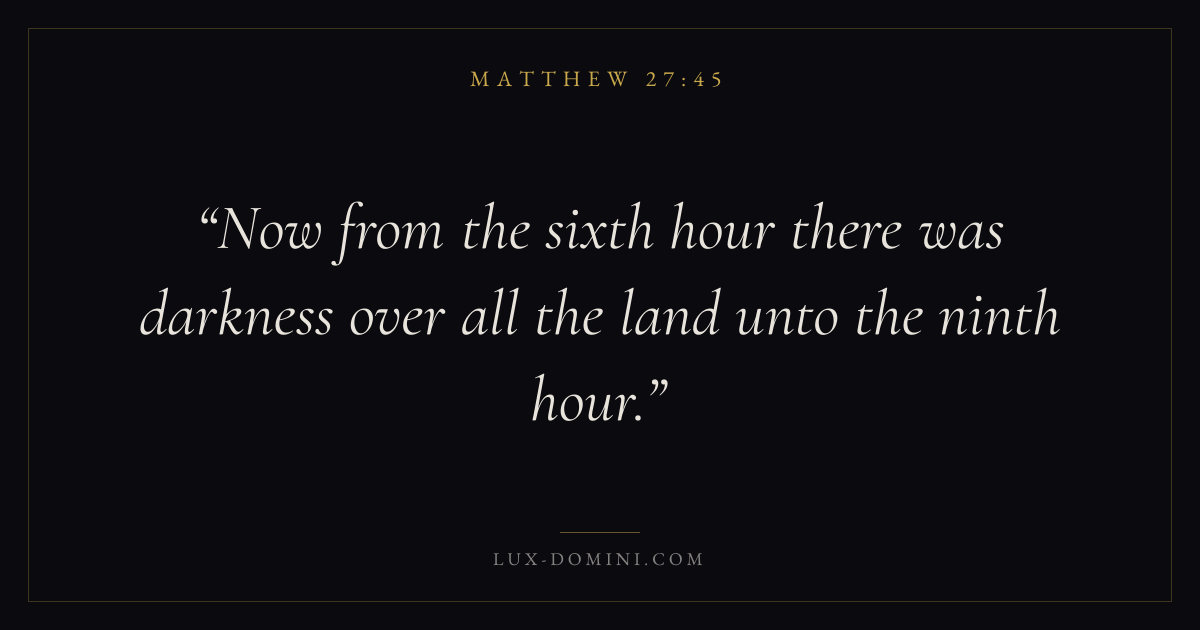 Now from the sixth hour there was darkness over all the land unto the ninth hour.