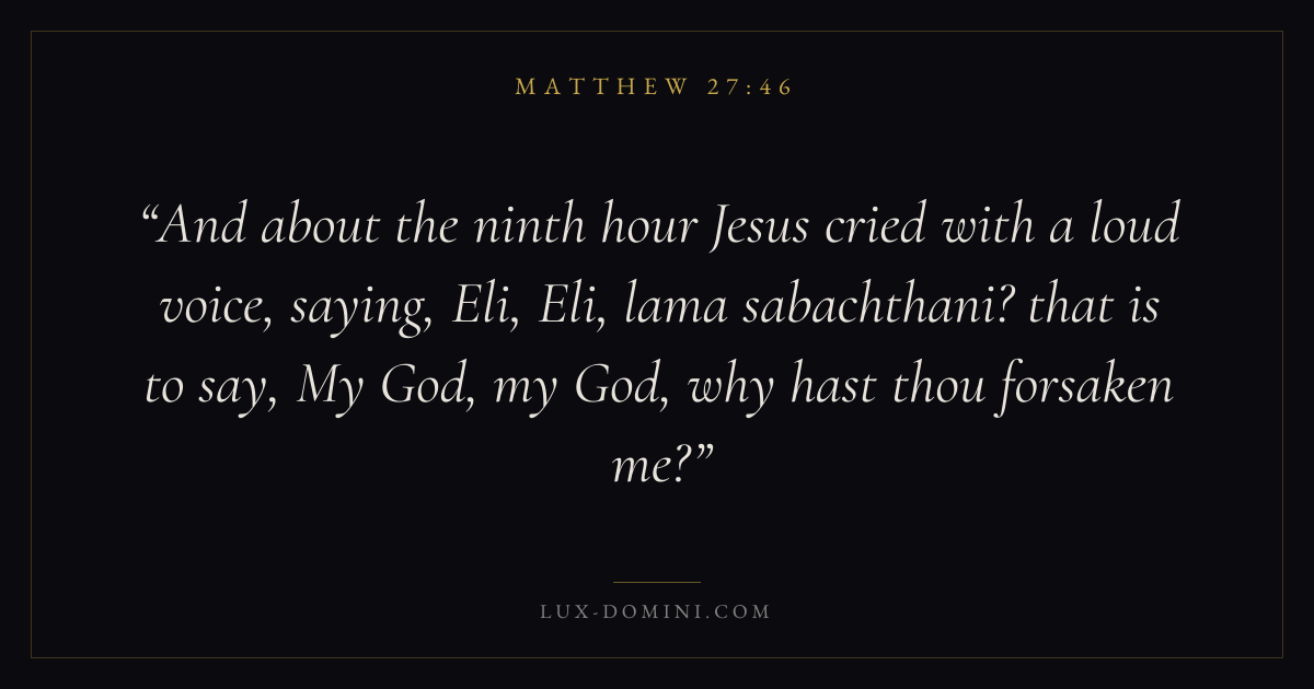 And about the ninth hour Jesus cried with a loud voice, saying, Eli, Eli, lama sabachthani? that is to say, My God, my God, why hast thou forsaken me?