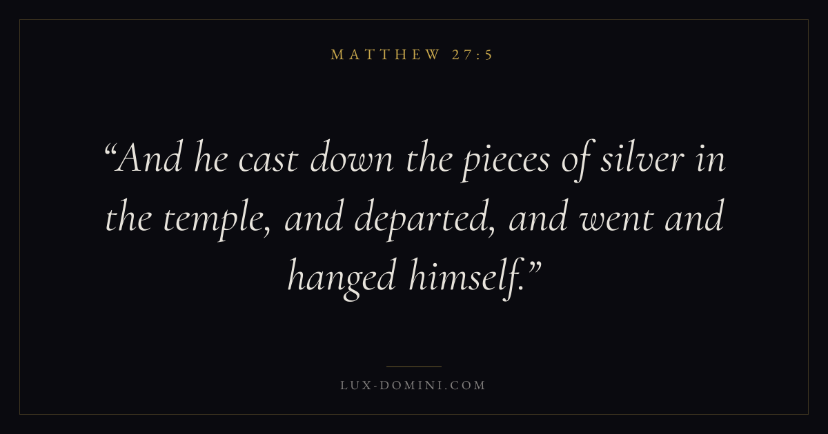 And he cast down the pieces of silver in the temple, and departed, and went and hanged himself.