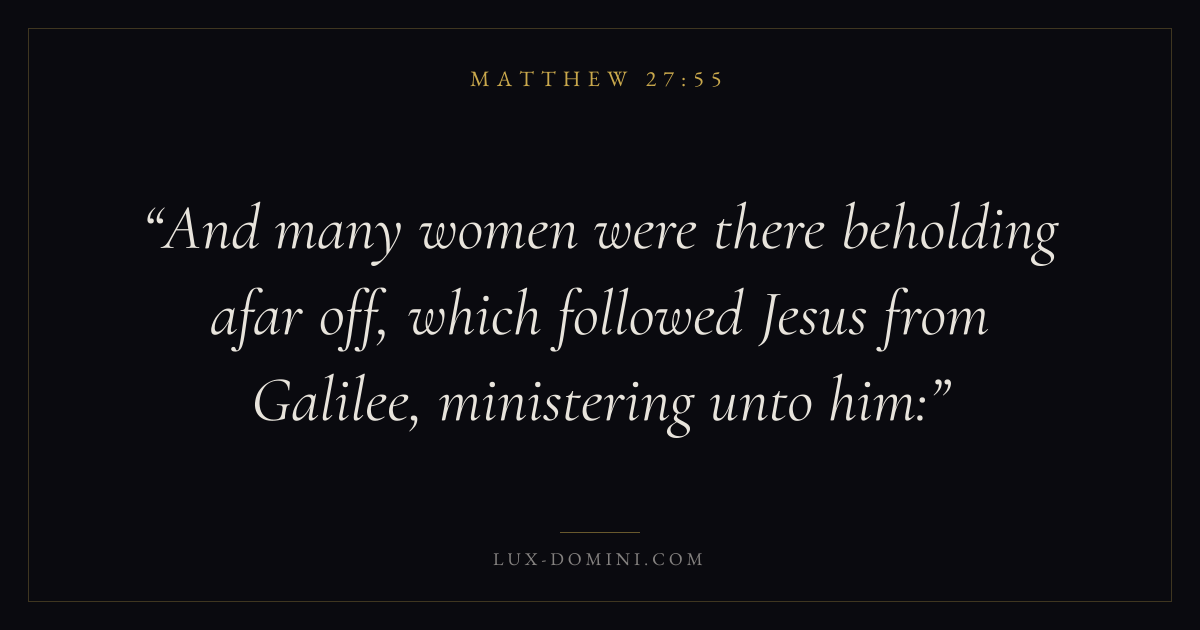 And many women were there beholding afar off, which followed Jesus from Galilee, ministering unto him: