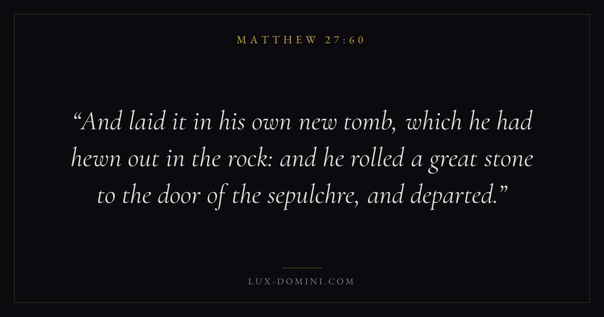 And laid it in his own new tomb, which he had hewn out in the rock: and he rolled a great stone to the door of the sepulchre, and departed.