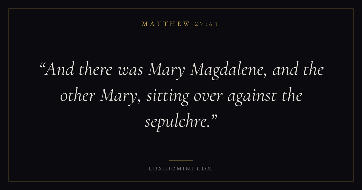 And there was Mary Magdalene, and the other Mary, sitting over against the sepulchre.