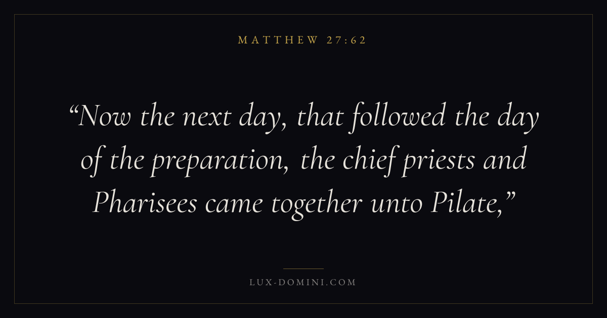 On the Jewish sabbath, the chief priests and Pharisees, when they should have been at their devotions, were dealing with Pilate about securing the sepulchre.