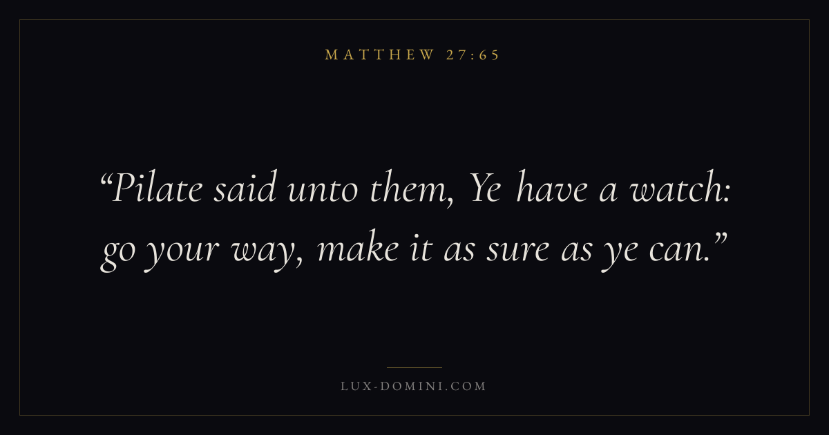 Pilate said unto them, Ye have a watch: go your way, make it as sure as ye can.