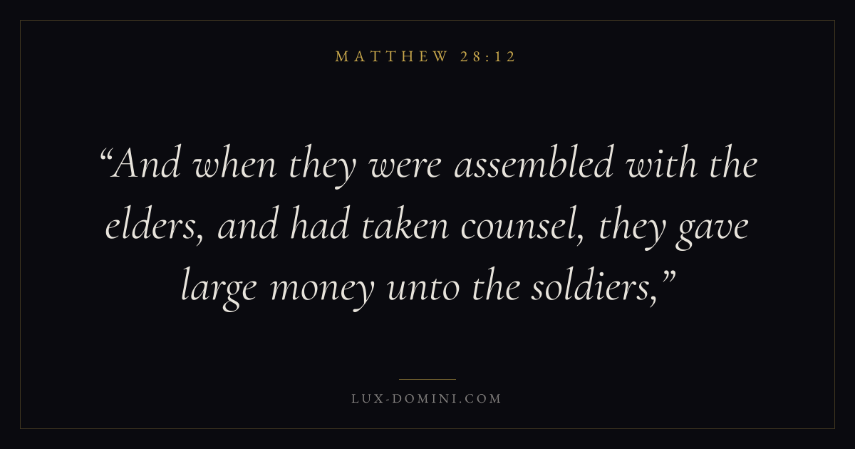 And when they were assembled with the elders, and had taken counsel, they gave large money unto the soldiers,