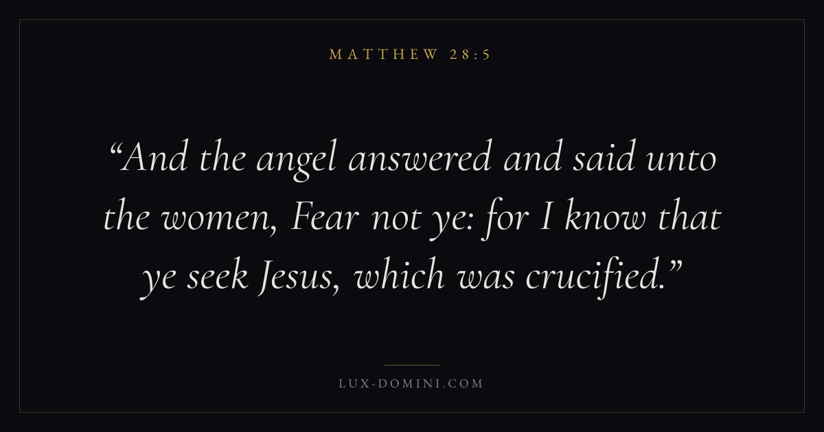 And the angel answered and said unto the women, Fear not ye: for I know that ye seek Jesus, which was crucified.