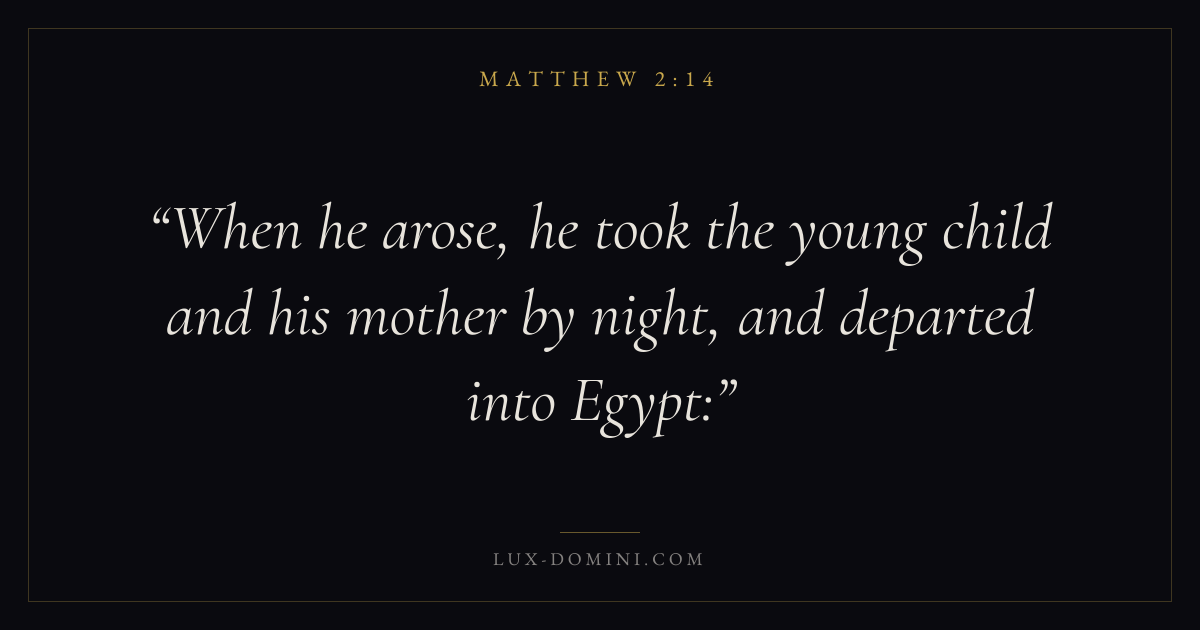 When he arose, he took the young child and his mother by night, and departed into Egypt:
