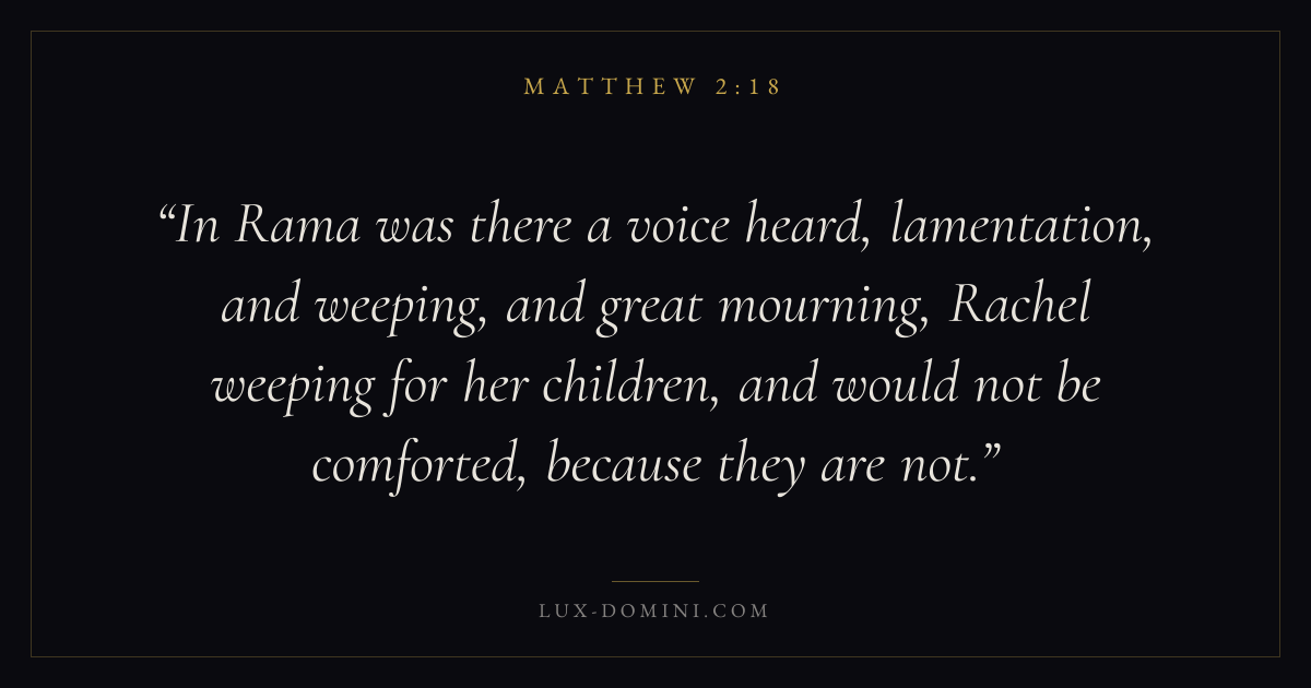 In Rama was there a voice heard, lamentation, and weeping, and great mourning, Rachel weeping for her children, and would not be comforted, because they are not.