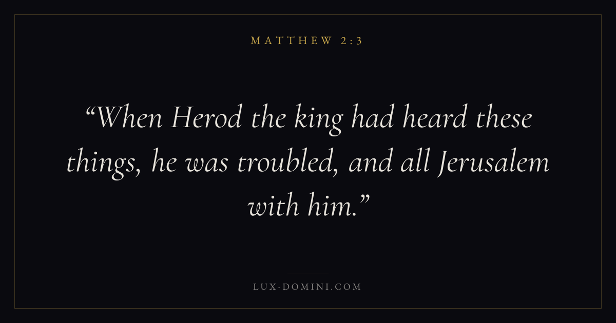 When Herod the king had heard these things, he was troubled, and all Jerusalem with him.