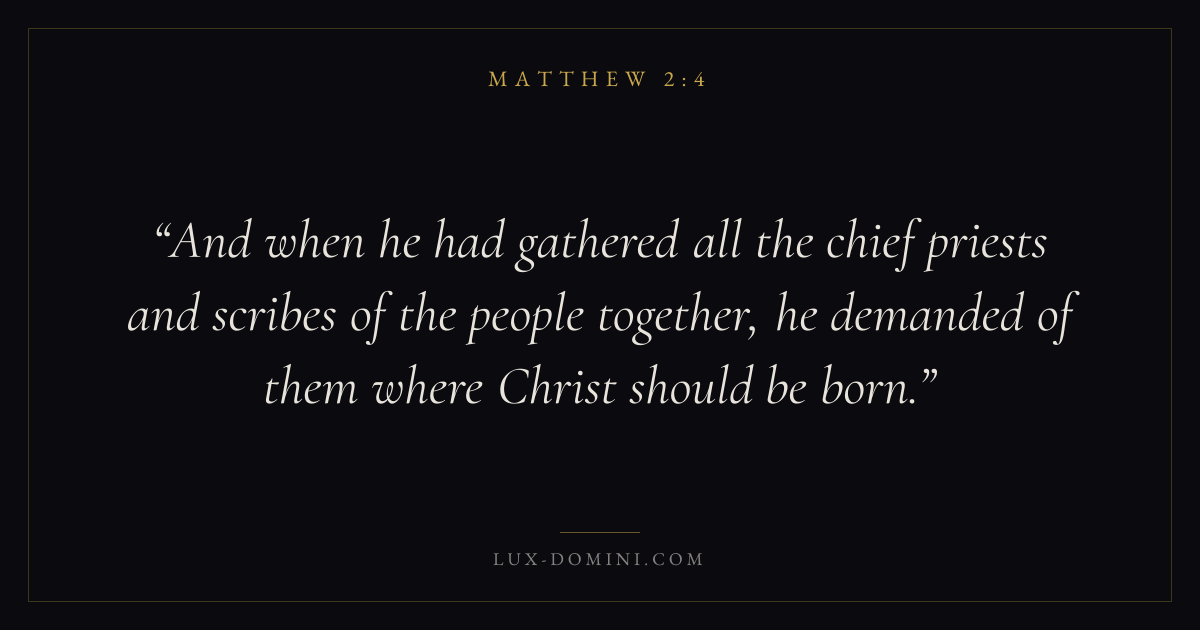 And when he had gathered all the chief priests and scribes of the people together, he demanded of them where Christ should be born.