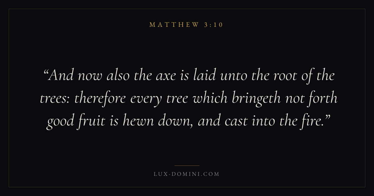 And now also the axe is laid unto the root of the trees: therefore every tree which bringeth not forth good fruit is hewn down, and cast into the fire.