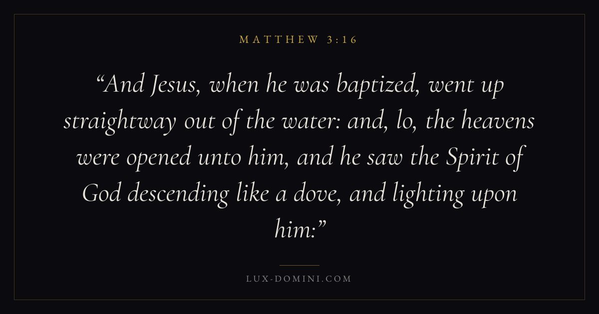 And Jesus, when he was baptized, went up straightway out of the water: and, lo, the heavens were opened unto him, and he saw the Spirit of God descending like a dove, and lighting upon him: