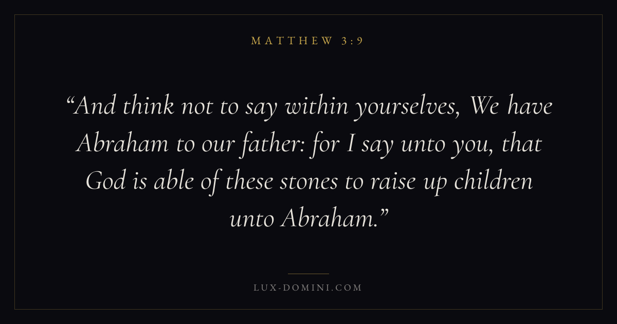 And think not to say within yourselves, We have Abraham to our father: for I say unto you, that God is able of these stones to raise up children unto Abraham.