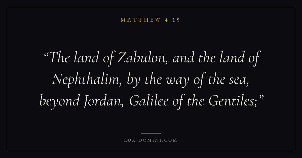 The land of Zabulon, and the land of Nephthalim, by the way of the sea, beyond Jordan, Galilee of the Gentiles;