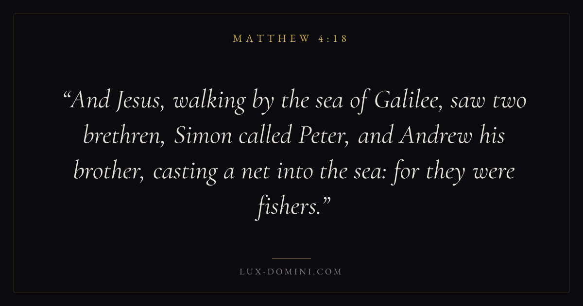 And Jesus, walking by the sea of Galilee, saw two brethren, Simon called Peter, and Andrew his brother, casting a net into the sea: for they were fishers.