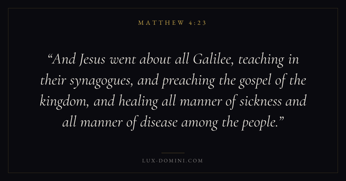 And Jesus went about all Galilee, teaching in their synagogues, and preaching the gospel of the kingdom, and healing all manner of sickness and all manner of disease among the people.