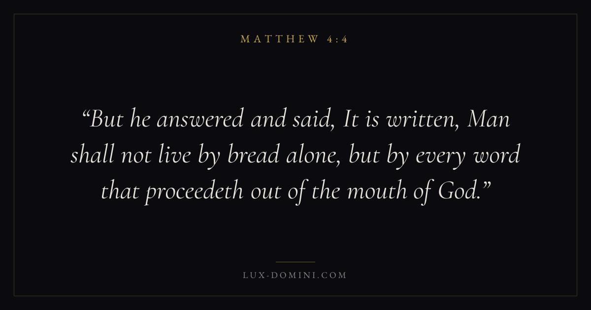 But he answered and said, It is written, Man shall not live by bread alone, but by every word that proceedeth out of the mouth of God.