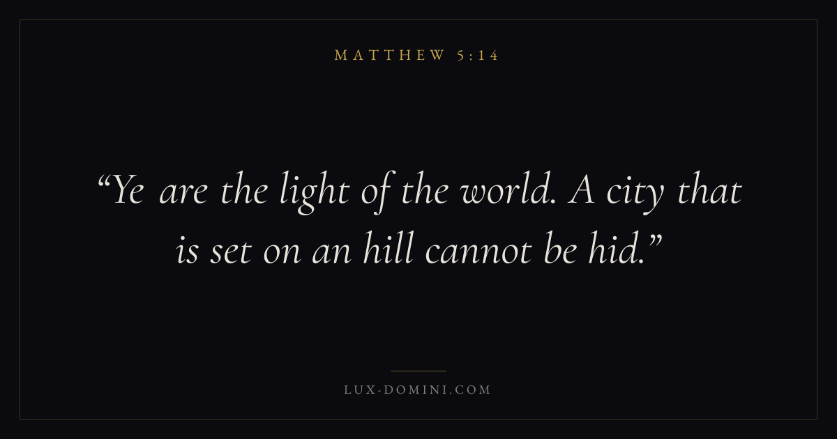 Ye are the light of the world. A city that is set on an hill cannot be hid.