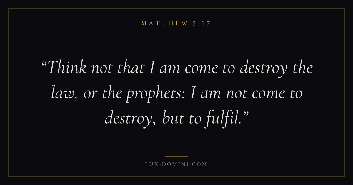 Think not that I am come to destroy the law, or the prophets: I am not come to destroy, but to fulfil.