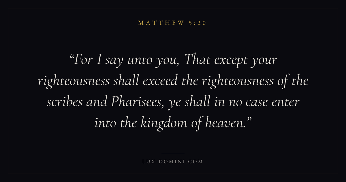 For I say unto you, That except your righteousness shall exceed the righteousness of the scribes and Pharisees, ye shall in no case enter into the kingdom of heaven.