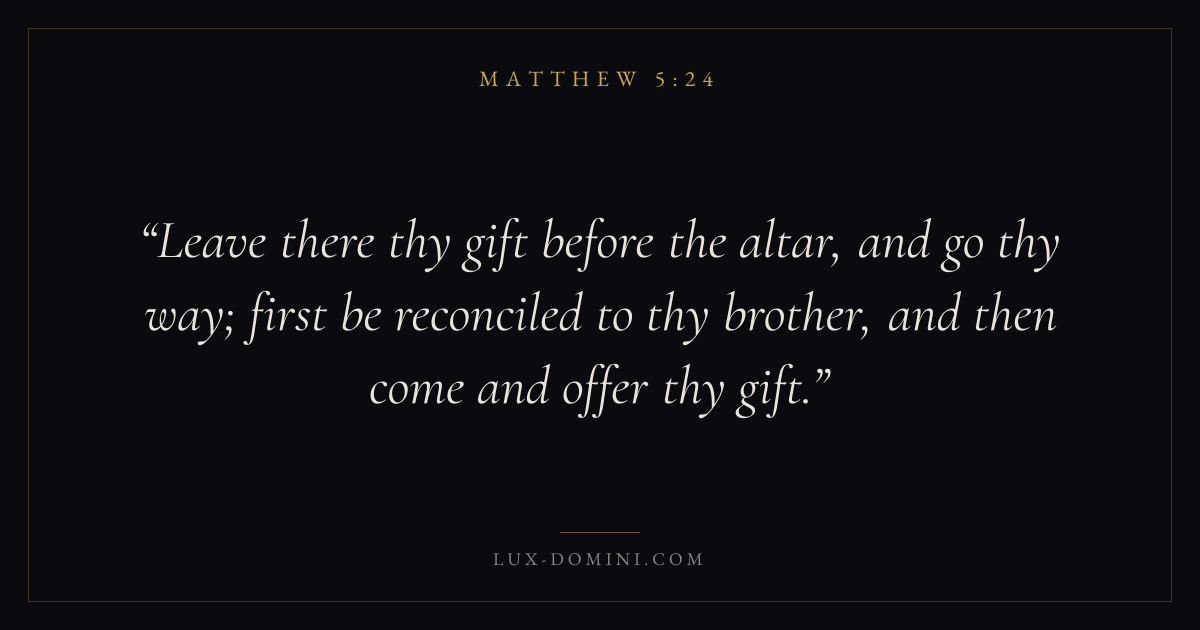 Leave there thy gift before the altar, and go thy way; first be reconciled to thy brother, and then come and offer thy gift.