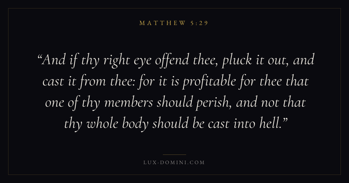 And if thy right eye offend thee, pluck it out, and cast it from thee: for it is profitable for thee that one of thy members should perish, and not that thy whole body should be cast into hell.