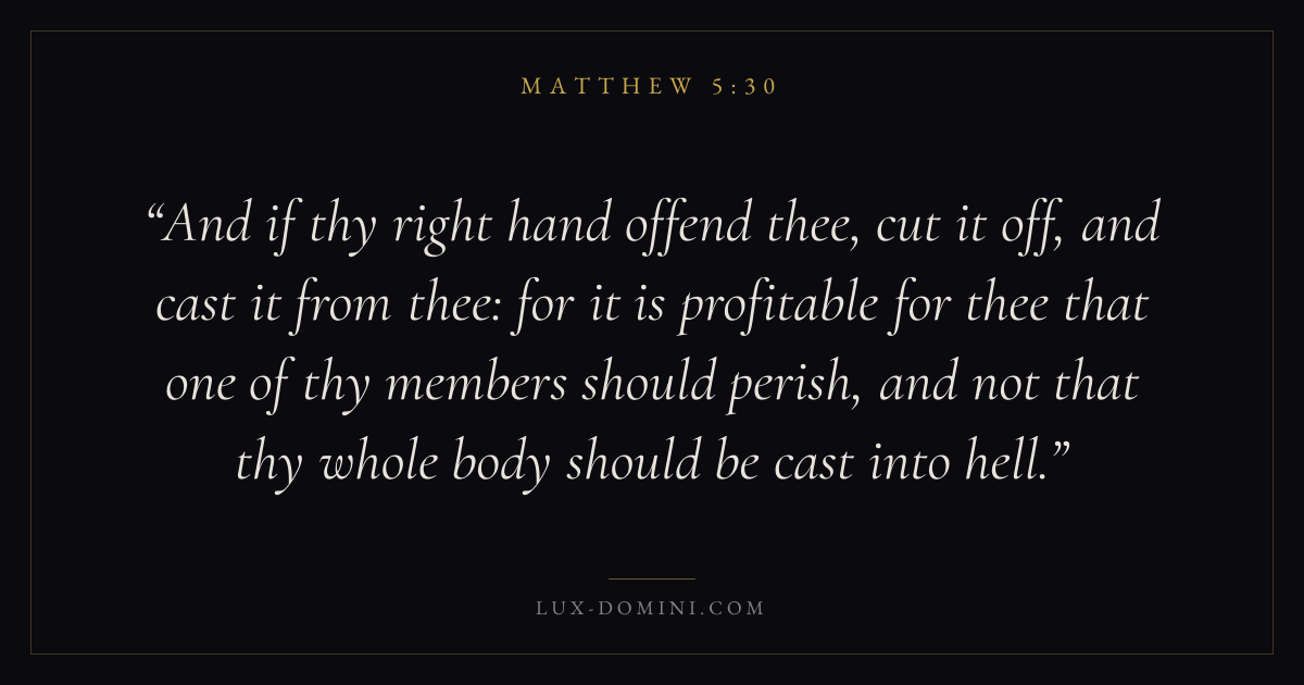 And if thy right hand offend thee, cut it off, and cast it from thee: for it is profitable for thee that one of thy members should perish, and not that thy whole body should be cast into hell.