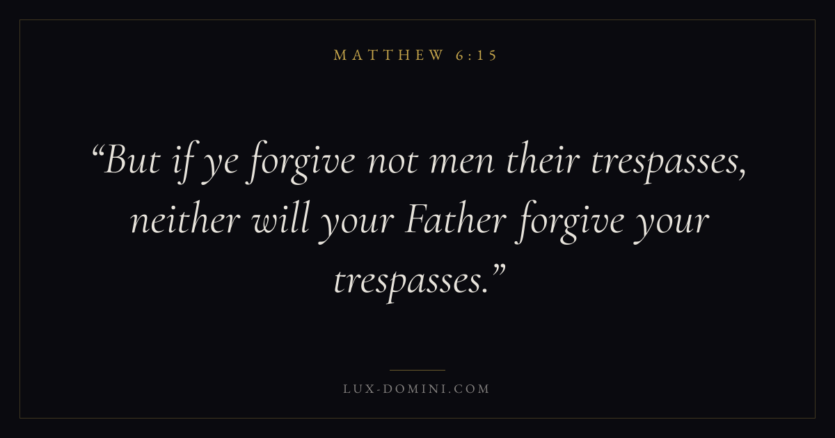 But if ye forgive not men their trespasses, neither will your Father forgive your trespasses.