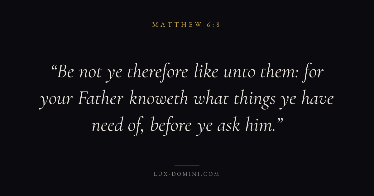 Be not ye therefore like unto them: for your Father knoweth what things ye have need of, before ye ask him.